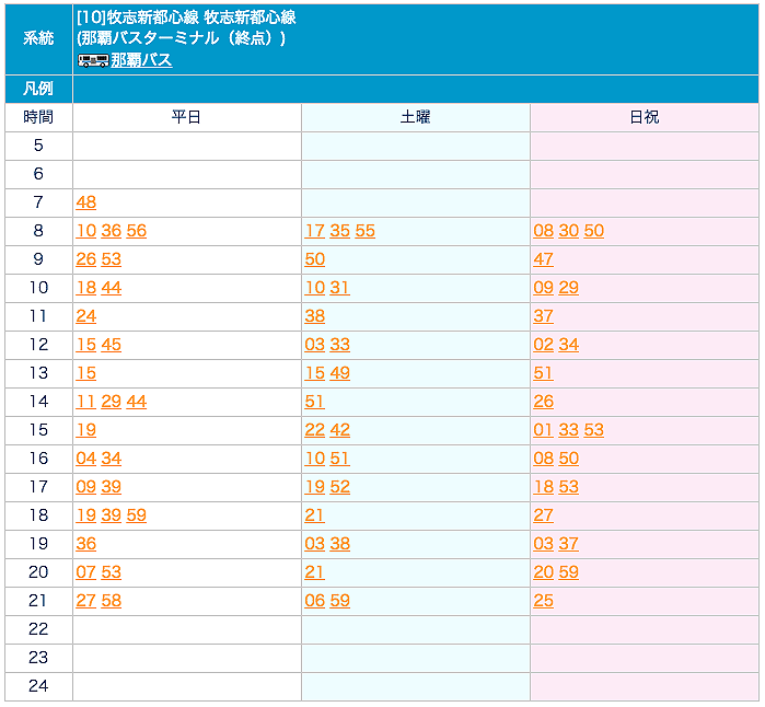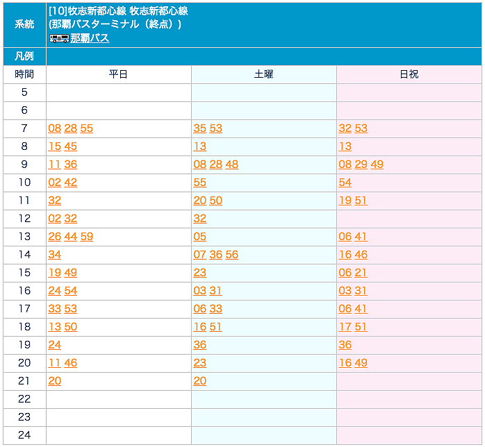 参考画像です。正確な時刻表は「那覇バスの時刻表」でご確認ください。