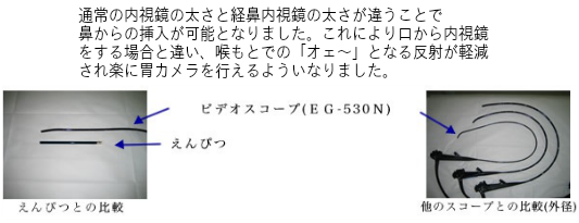 鼻からの場合の最大の利点は、口の奥の舌の部分を押さえなくてよく、おえっとする反射が少なくてすむ点です。