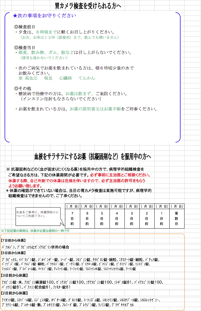 検査日が決まったら、2階の内視鏡センターの受付で、検査の手順のご案内とパンフレットをお渡し致します。
