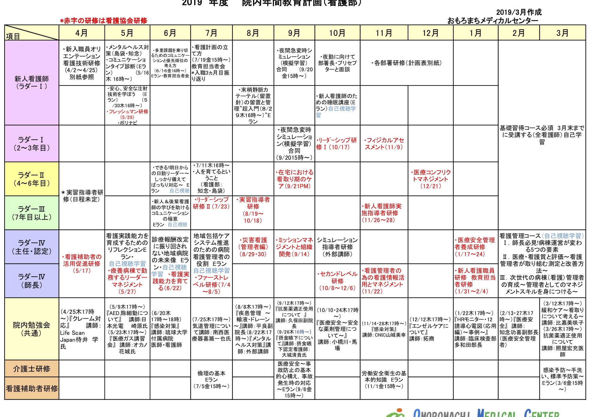 看護部以外の職員も対象の令和01度年間教育プログラムです。
