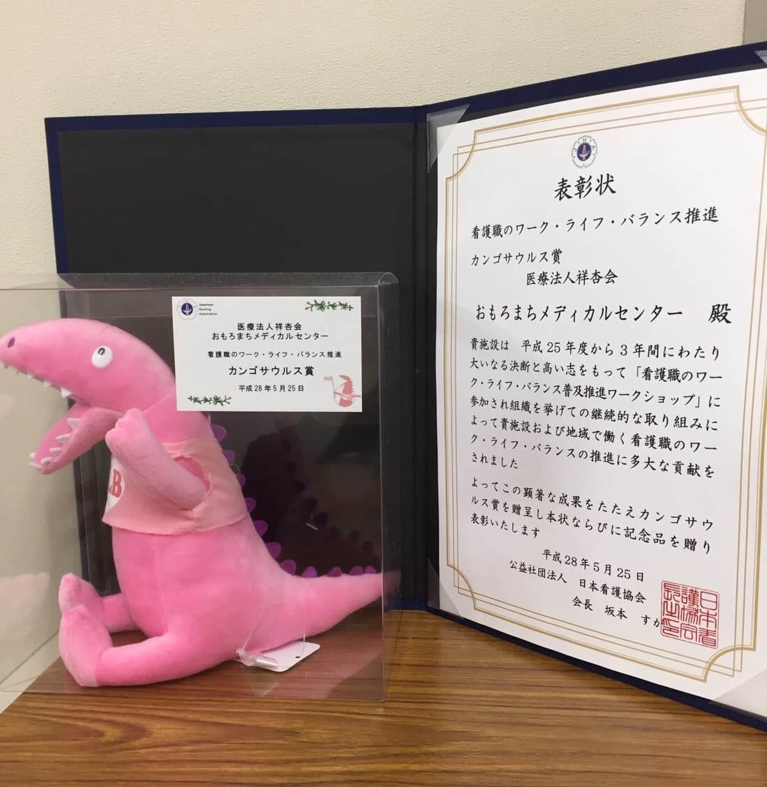 この取り組みに対して、日本看護協会から「カンゴザウルス賞」を頂きました。