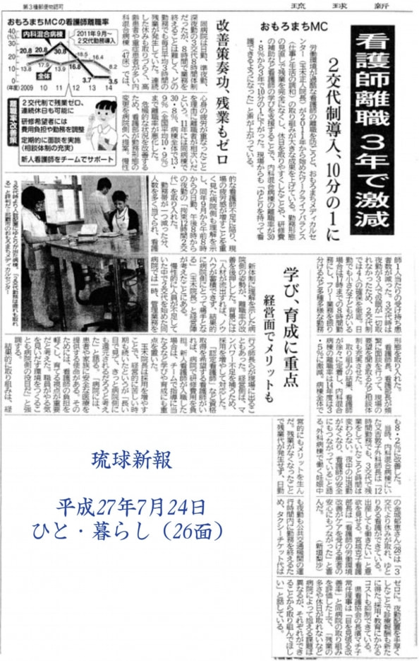 当院で行っているワークライフバランスについて、琉球新報が取り上げてくれました。