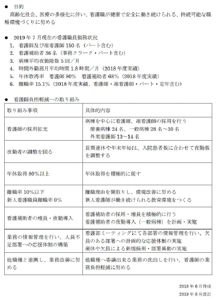 当院では、医療現場という厳しい環境の中でも生活と仕事を豊かに継続できるために、働き方改革として、看護職のワーク・ライフ・バランス推進に取り込んできました。